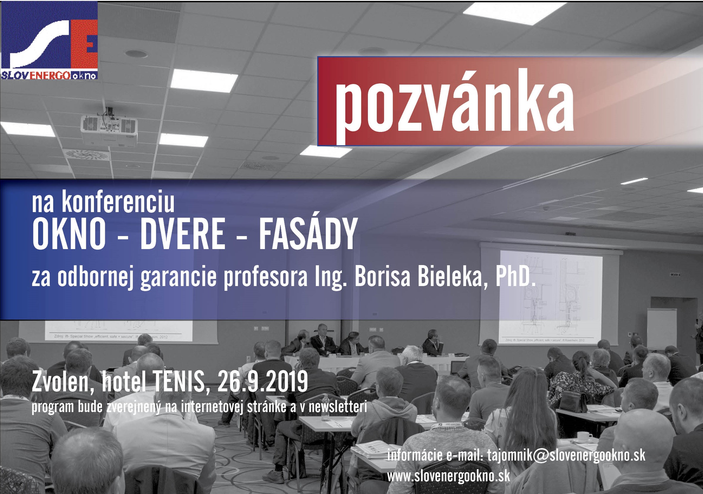 Konferenci organizovala společnost Slovenergookno - ZDRUŽENIE SLOVENSKÝCH VÝROBCOV VÝPLNÍ STAVEBNÝCH OTVOROV A KONŠTRUKCIÍ, DODÁVATEĽOV SÚVISIACICH KOMPONENTOV, TECHNOLÓGIÍ A MATERIÁLOV NA ZABUDOVANIE OKIEN. Konference proběhla ve Zvolenu.